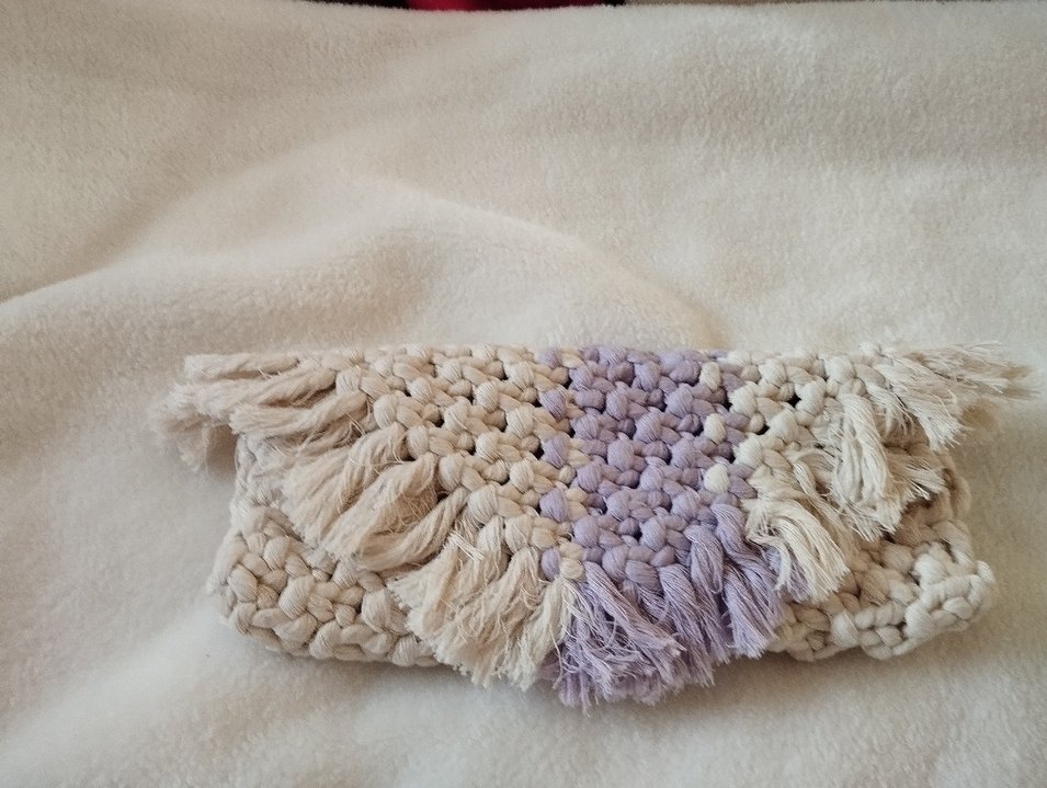 Çocuklar için örgü dokulu, bej ve pastel bağlama desenli yumuşak ve rahat battaniye. Kenarlarında püsküller bulunur.