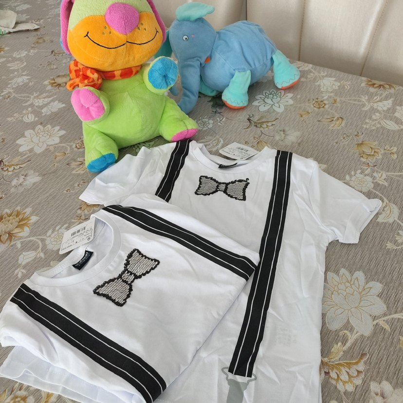 Çocuklar için beyaz içlikler, üzerinde baskılı gri papyon ve siyah şerit desenleri bulunur. Yumuşak ve rahat kumaştan üretilmiştir. adet