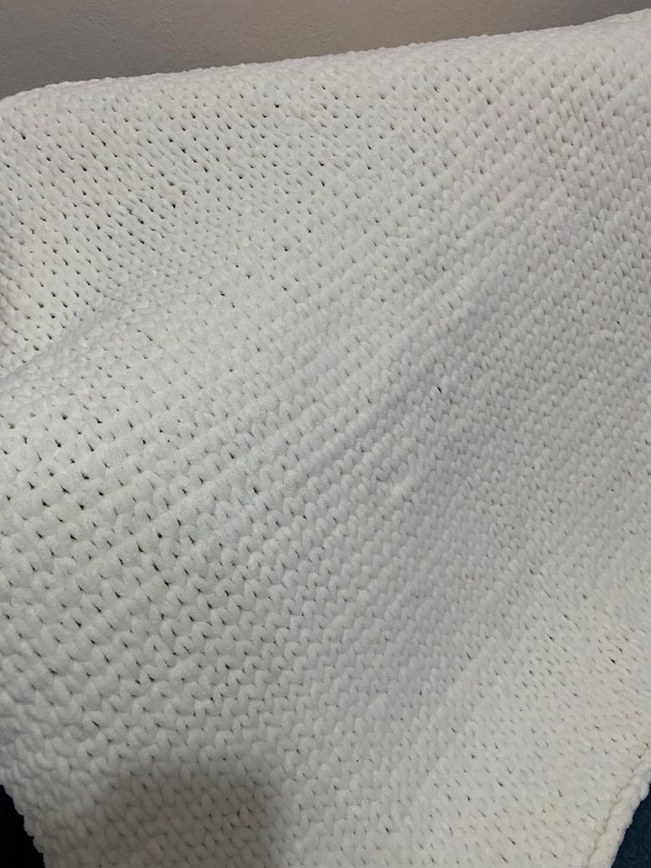 Çocuklar için beyaz örgü desenli yumuşak sentetik kumaştan yapılmış battaniye. Rahat ve sıcak tutar. ️