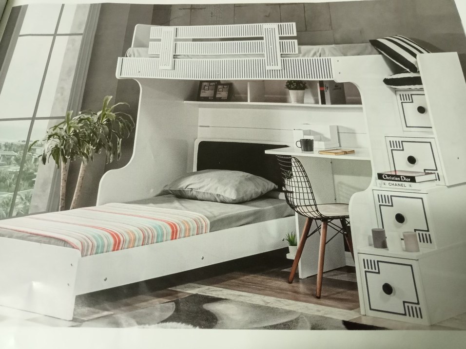 Çocuk odaları için sağlam yapılı, raflı ve güvenlik korkuluklu beyaz ve siyah ranza. ️ imalattan satış İnegöl ve Bursa ya nakliye kurulum