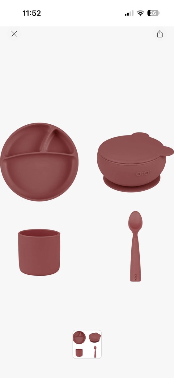 Bordo renkli, bölmeli tabak, kapaklı kase, bardak ve kaşıktan oluşan çocuk yemek seti. Yumuşak ve güvenli malzemeden üretilmiştir. ️