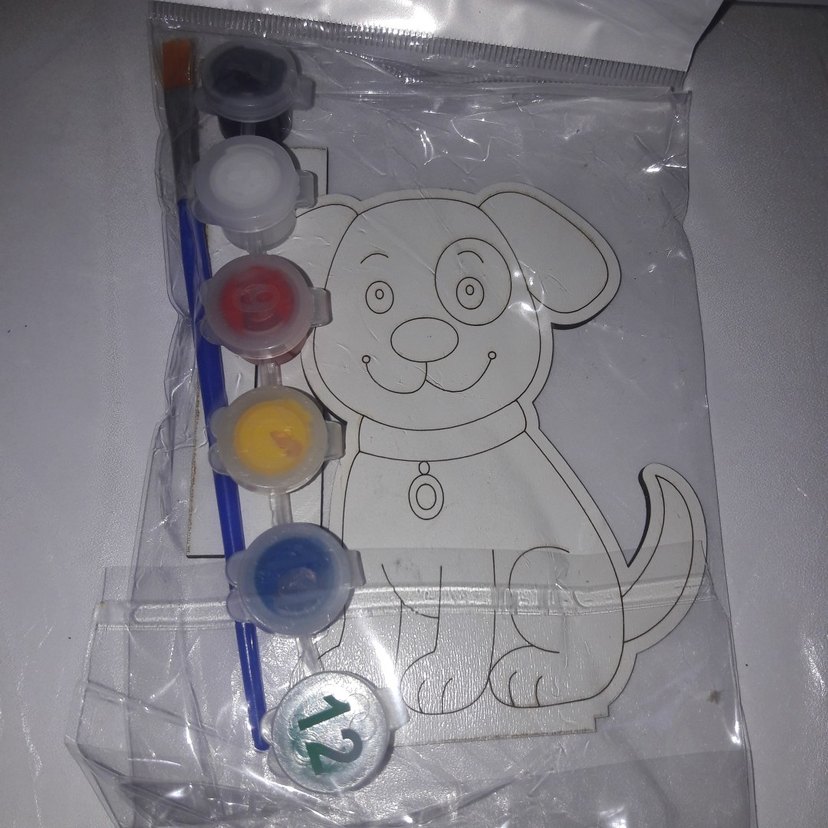 Köpek figürlü boyama tahtası, içinde boya ve fırça bulunan çocuklar için eğitici oyuncak. Yaratıcılığı ve renkleri öğrenmeyi destekler.