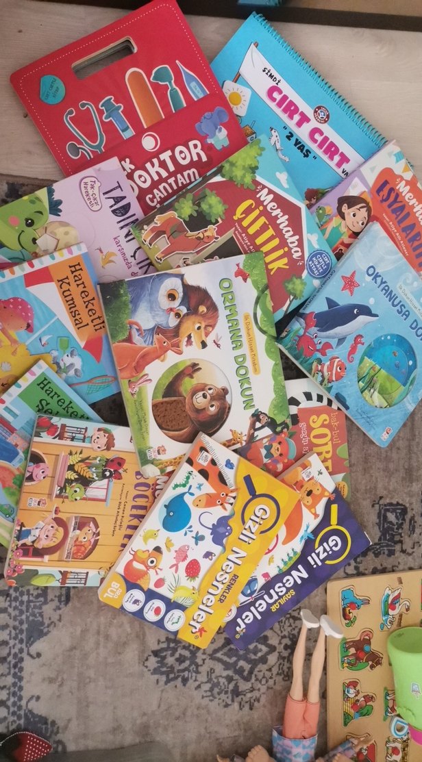 (ormana dokun kitabı satıldı) Çeşitli hayvanlar, doğa ve etkileşimli hikayeler içeren renkli çocuk kitapları koleksiyonu. 14 tane kitap cırtlı dokun hisset. Doktor kitabı hareketli kitaplar.
