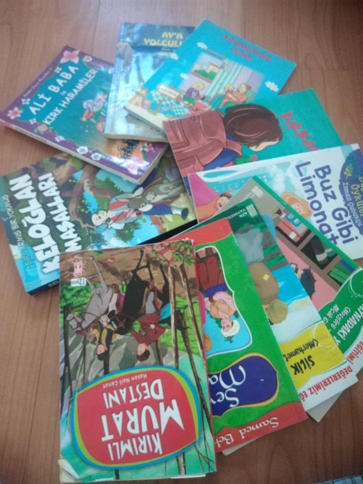 Renkli resimlerle çeşitli hikayeler içeren çocuk kitapları koleksiyonu. 'Buz' ve 'Kırmızı Murat Destanı' gibi kitaplar bulunur.