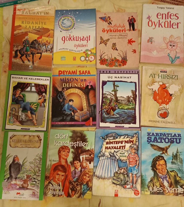 Gökkusağı, Mutluluk, Bintepe'nin Hayaleti gibi çeşitli çocuk hikaye kitaplarından oluşan set.