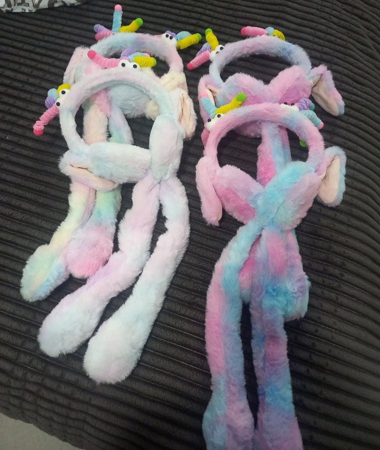 Çocuklar için pastel tonlarda, bağcıklı detaylı, yumuşak peluş saç bantları, retro tarzda.hareketli kulaklık