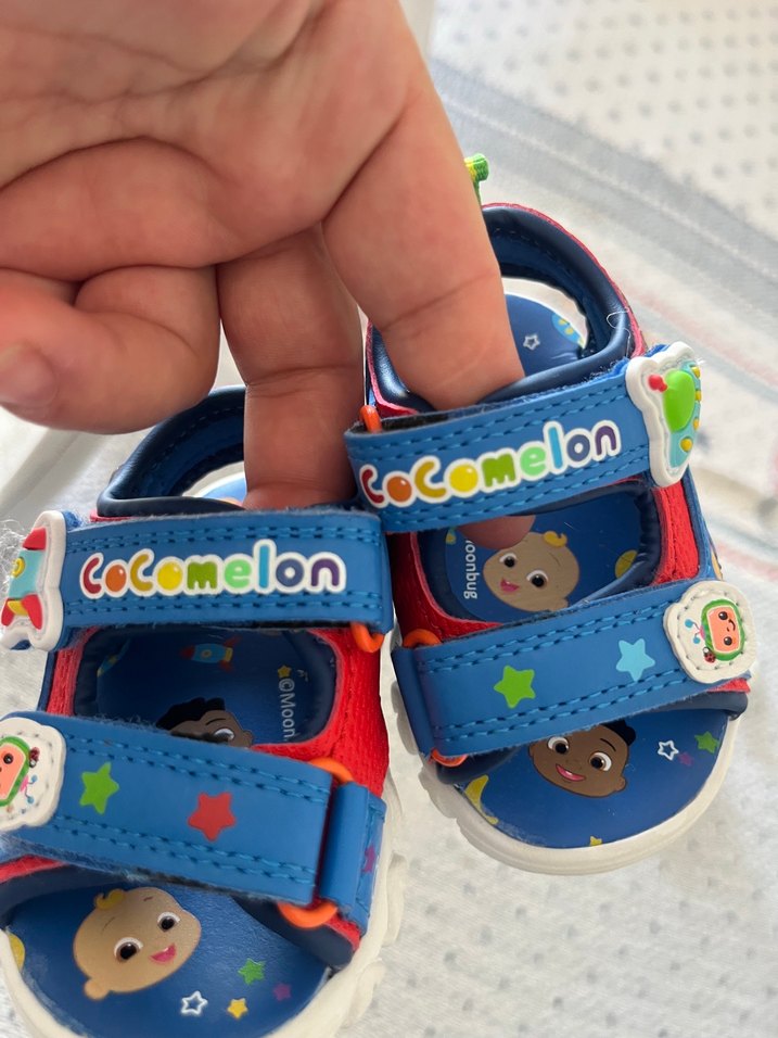 Çok renkli, baskılı tasarımlı ve ayarlanabilir cırt cırtlı çocuk sandaletleri. Dayanıklı kauçuk malzemeden üretilmiş, CoComelon karakterleri içerir.