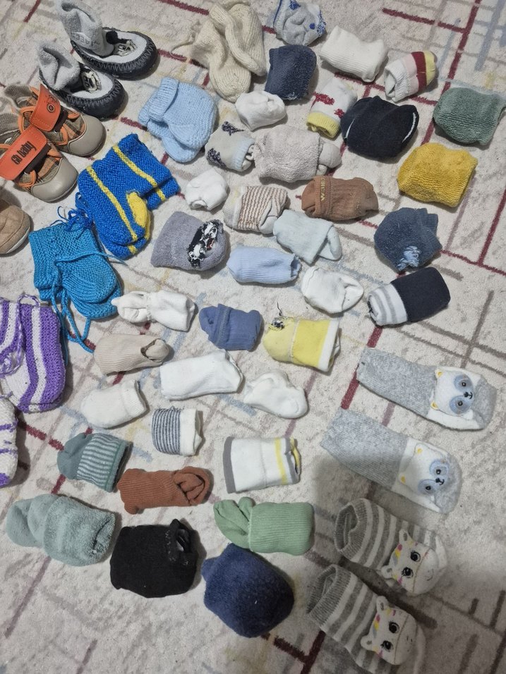 Farklı renklerde ve sade desenlerde çocuklar için çok renkli çorap seti.