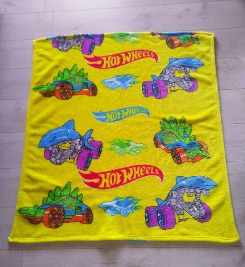 Yumuşak ve sıcak kumaştan yapılmış, renkli Hot Wheels desenli çocuk battaniyesi, rahat anlar için uygundur. 100x120cm
