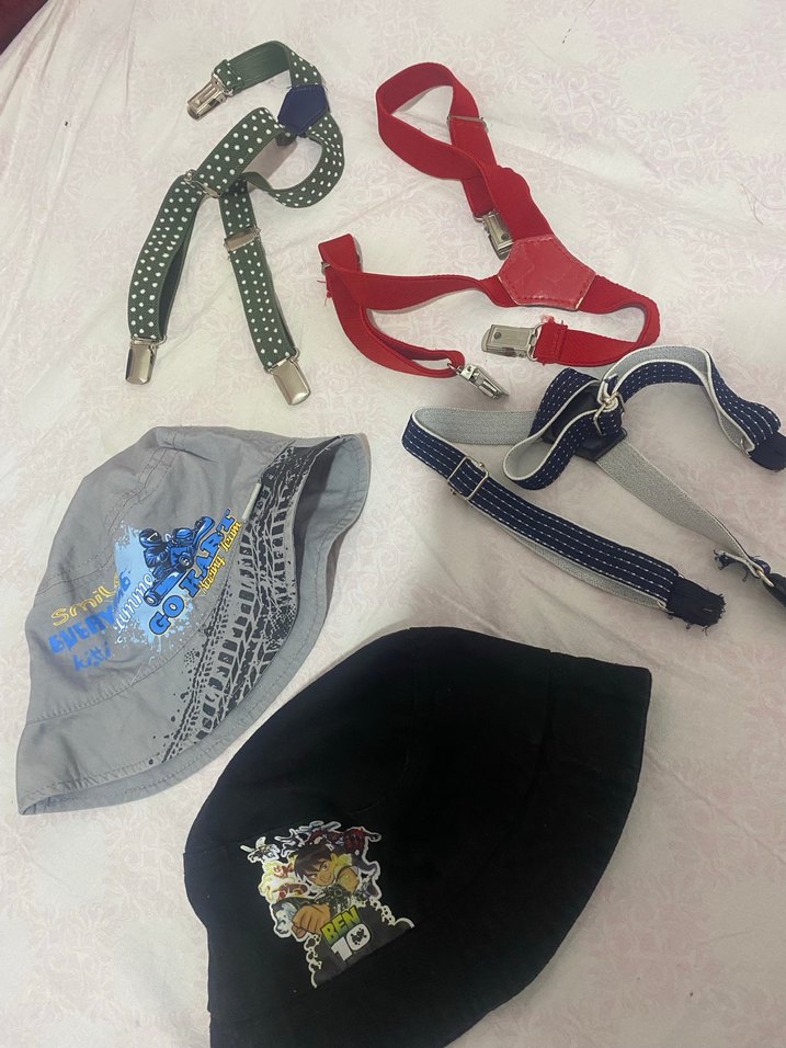 Çocuklar için sentetik kumaştan, nakışlı desenli, çok renkli ve cırt cırtlı ayarlanabilir askılar.