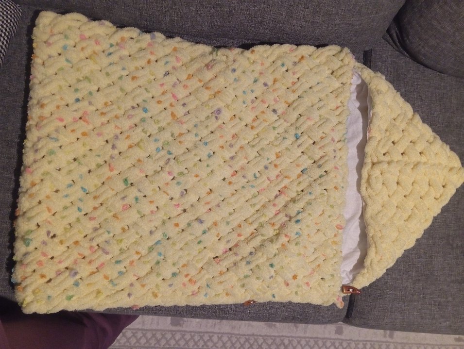 Çocuklar için yumuşak örgü battaniye, pastel çok renkli tasarıma sahip. Rahat ve nazik kullanıma uygun. sayılı kullanıldı