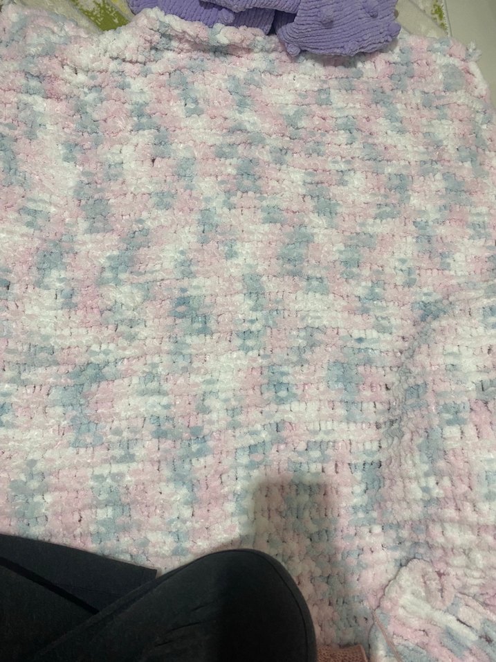 Pastel çok renkli örgü battaniye, yumuşak dokusu ve batik desenleriyle çocuklar için uygundur.