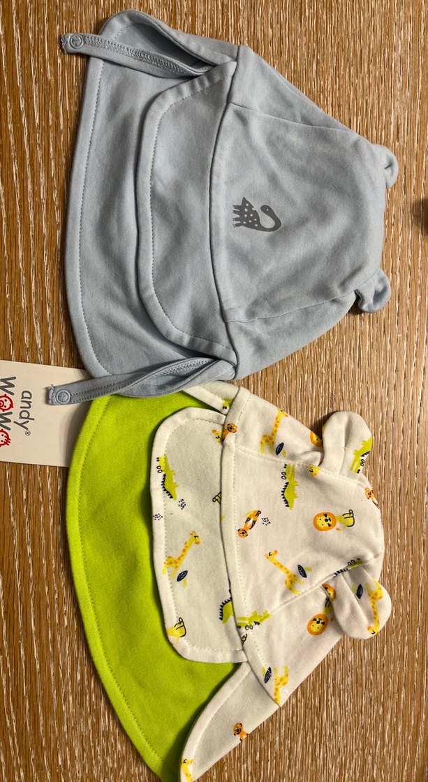 Çocuklar için desenli ve mavi/beyaz kapüşonlu şapka(2li)