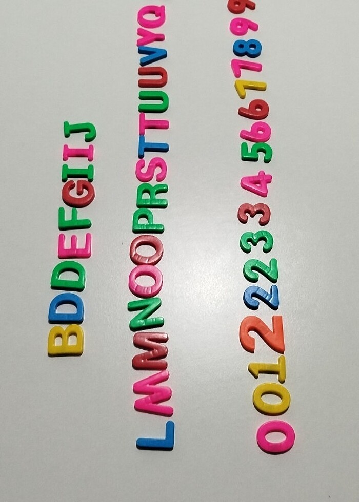 Çocuklar için harf ve rakamlar, bu şekilde satılmaktadır, birkaç harf eksik birkaç rakam eksik, ANAOKULU VE İLKOKULLAR İÇİN ÇOK UYGUNDUR, arka taraf mıknatıslıdır, özenle paketlenip gönderin sağlanacaktır, poşet ile değil kutu ile gönderim yapacağım,