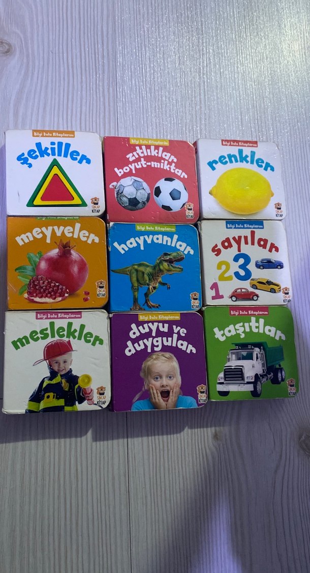 Ön ve arka yüzü bu şekilde arkası yapboz gibidir 9 mini kitap biz çok severek kullandık içleri güzeldir tek tek çekmem mümkün değil