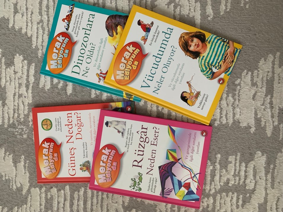 Dinozorlar, vücut, güneş ve rüzgar gibi konuları eğlenceli resimlerle anlatan çocuk kitapları seti. Yeni gibiler sorunları yok