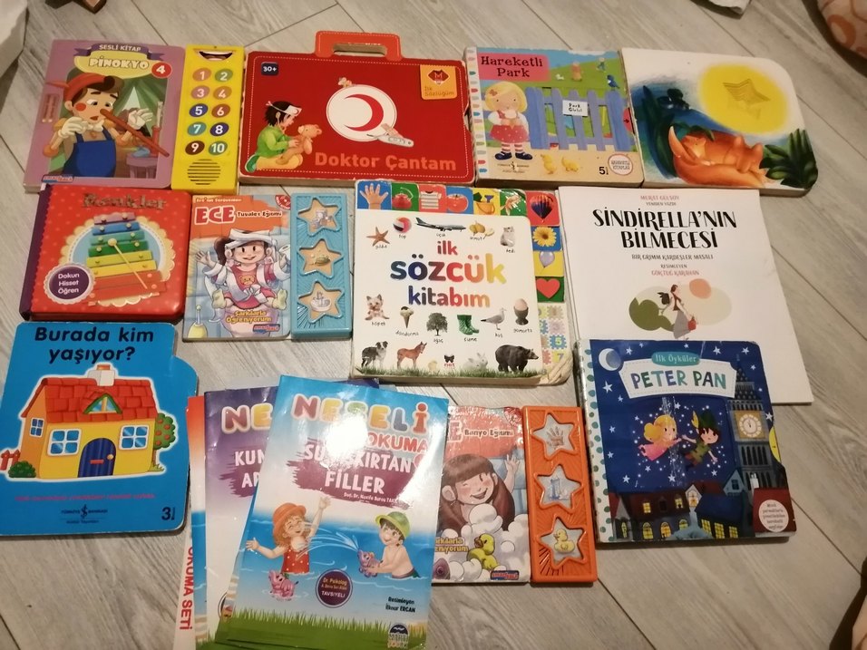 İlk sözcük kitapları, hikaye kitapları ve hareketli oyun setleri içeren çocuklar için eğitici kitap ve oyun koleksiyonu. Defolular çizik yırtık kopuk yerleri var o yüzden fiyatı çok uygun koydum ona göre değerlendirin