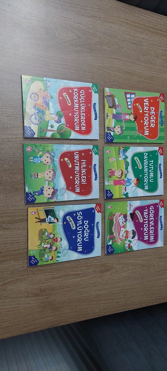 Çok az kullanılmış tertemiz 6 adet okuma hikaye kitapları........Cesaret, iyilik, doğruluk ve sorumluluk gibi değerleri öğreten 6 çocuk kitabı seti. Her kitap eğlenceli hikayelerle önemli hayat becerilerini anlatır.