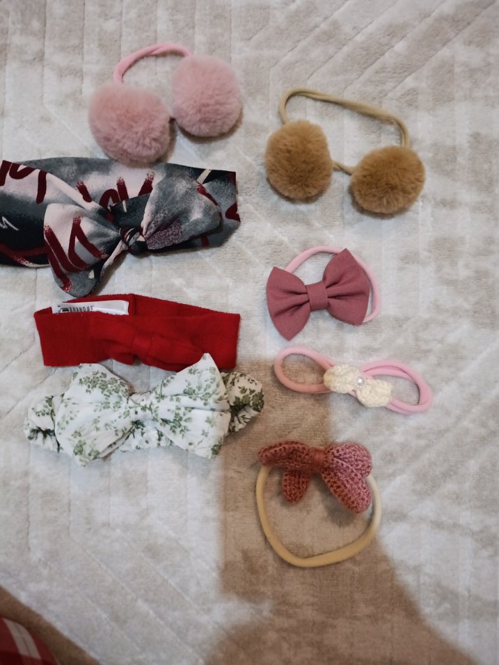 Yumuşak ponponlar, fiyonklar ve çiçek desenleri içeren elastik çok renkli saç bantları, modaya uygun ve bohem tarzlar için ideal.