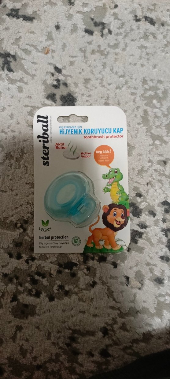 “Çocuk diş fırçası için hijyenik koruyucu kap. Aktif buhar teknolojisiyle fırçayı temiz ve taze tutar. 3 aya kadar koruma sağlar.”