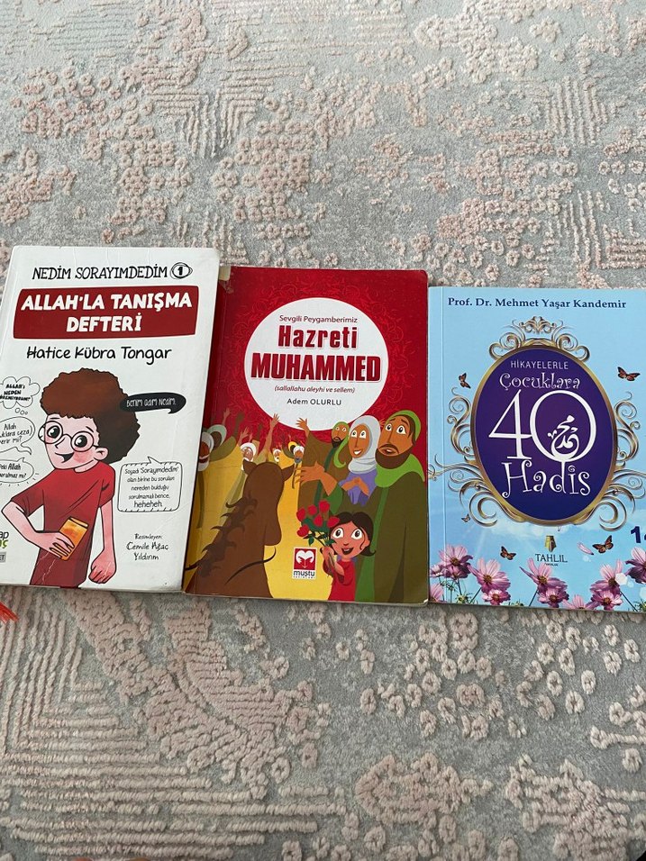 ilk kitabın yanında boya var ikinci kitabın kısmı hafif yıpranmıs durumda üçüncü kitapta ise yazı yazıyor onun dışı içleri sağlam kitaplar