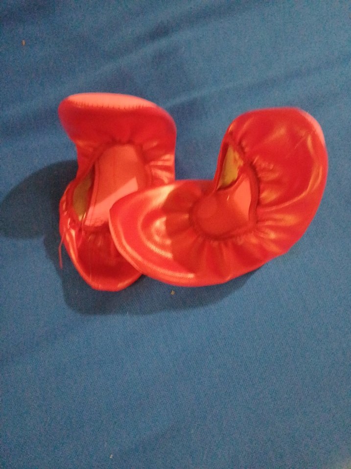 Esnek kauçuk malzemeden yapılmış, çocuklar için kırmızı babetler, fırfır detayıyla tarz katıyor. pisipisi