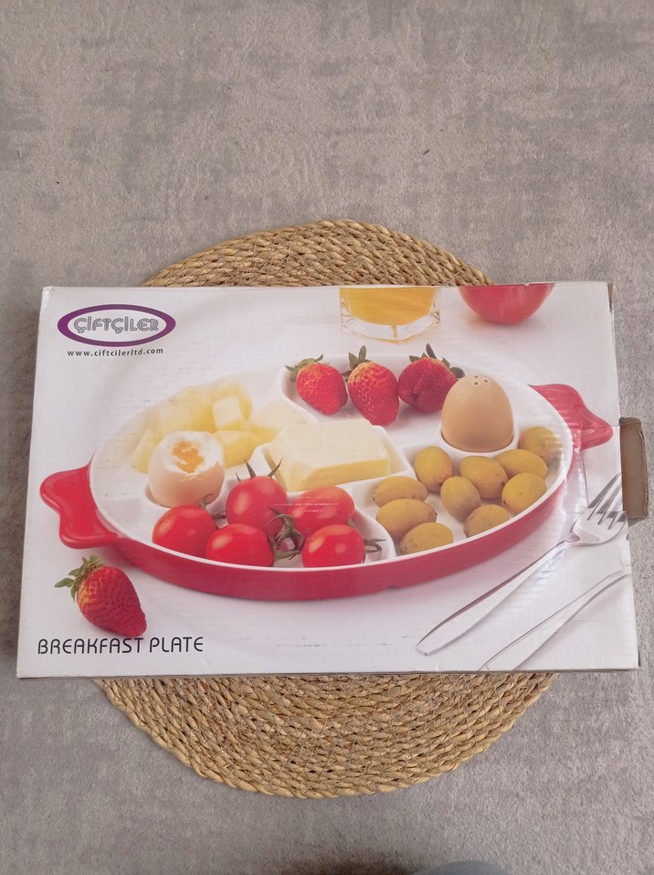 Dışı Koyu pembe içi beyaz renkli, bölmeli kahvaltı tabağı, 4 kişilik aileler için uygundur. 4adet fiyatıdır. Ambalajda "BREAKFASTPLATE" yazısı bulunur. ️