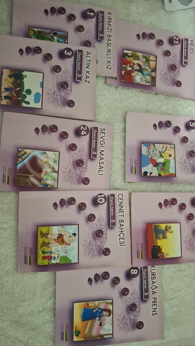 Altın Kaz, Kurbağa Prens, Cennet Bahçesi, Başlıklı Kız ve Sevgi Masalı gibi klasik çocuk hikayeleri içeren kitap seti.