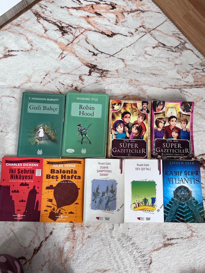 Robin Hood, Gizli Bahçe ve Balonla Beş Hafta gibi klasik çocuk kitaplarından oluşan bir set. Süper Gazeteciler serisi de dahil.