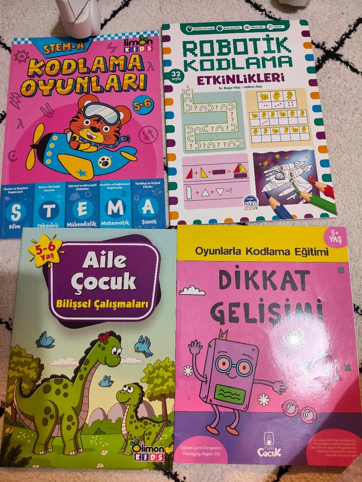 Çocuklar için kodlama oyunları, bilişsel çalışmalar ve dikkat gelişimi konularını içeren, STEM öğrenimini destekleyen kitaplar.