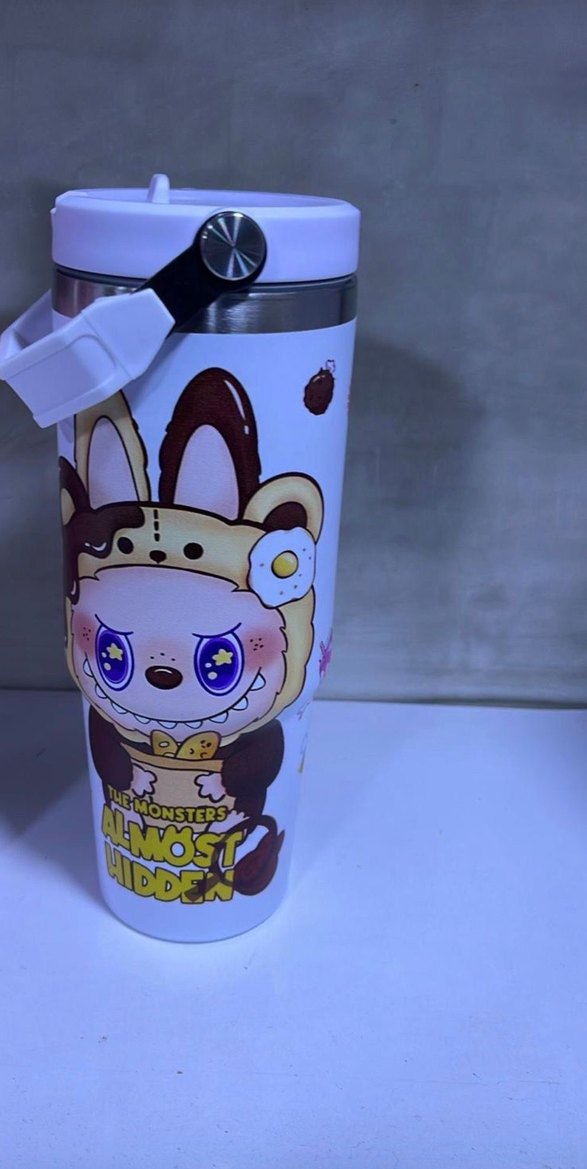 Çocuklar için labubu desenli renkli termos şişe