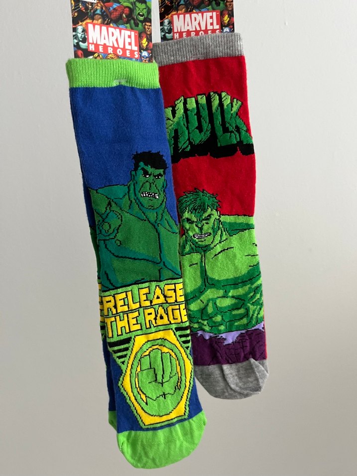 Marvel'ın Hulk karakteri desenli, "Release the Rage" yazılı renkli çocuk çorapları. Yumuşak ve rahat kumaştan üretilmiştir.12 13 yaş