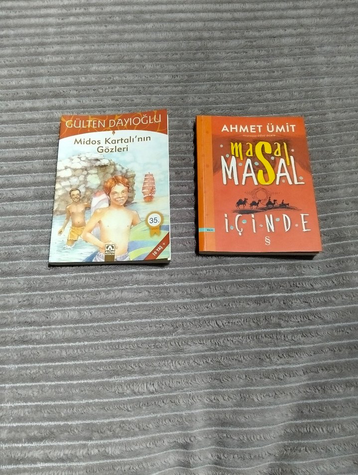 Gülten Dayıoğlu'nun 'Midos Kartalının Gözleri' ve Ahmet Ümit'in 'Masal Masal İçinde' adlı çocuk kitaplarından oluşan set.