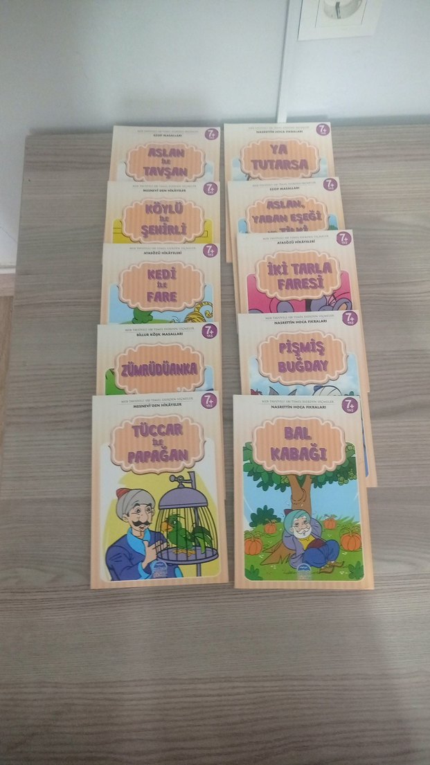 7 yaş ve üzeri çocuklar için çeşitli masal kitaplarından oluşan resimli bir set. İçerisinde "Aslan ve Tavşan" ve "Tüccar ve Papağan" gibi hikayeler yer alır.
