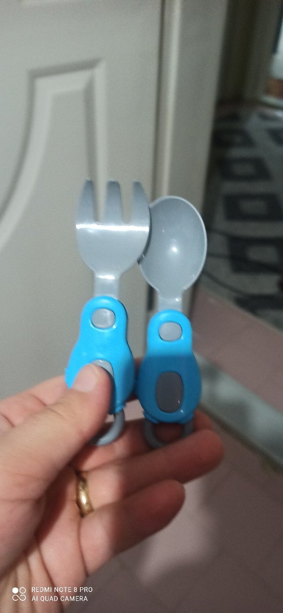 Çocuklar için Mavi Çatal ve Kaşık Seti oyuncak ama yemekde yenir