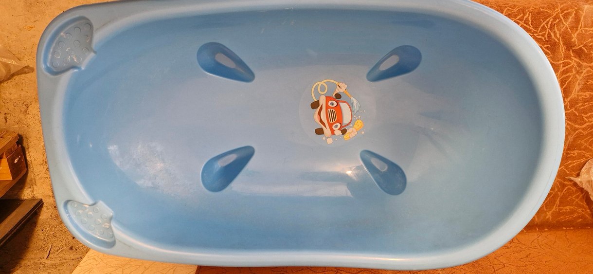 Mavi renkte çocuklar için küvet. Renkli çizgi film araba desenine sahiptir. İki tutma yeri ile güvenli kullanım sağlar. Hiçbir sıkıntısı yok