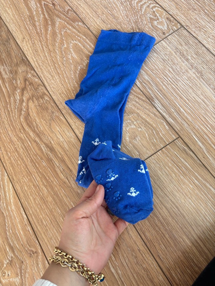 Yumuşak sentetik kumaştan yapılmış,desenli ve renkli mavi çocuk külotlu çorap. Kaydırmaz taban 3-4 yaşa uygundur hiç giyilmemiştir