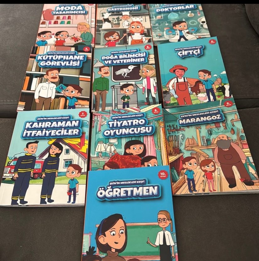 Çeşitli meslekleri tanıtan, öğretmen, veteriner, çiftçi, oyuncu ve marangoz gibi kitap serisi. Renkli çizimlerle dolu.