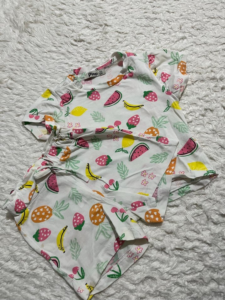 Çocuklar için yumuşak pamuklu kumaştan, pastel renklerde meyve desenli pijama takımıdır .
