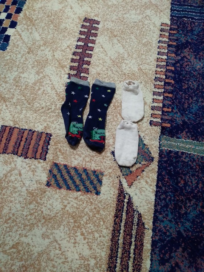 Nakışlı desenlere sahip renkli çocuk çorapları ve düz beyaz çoraplardan oluşan set. ikisinin fiyatidir.