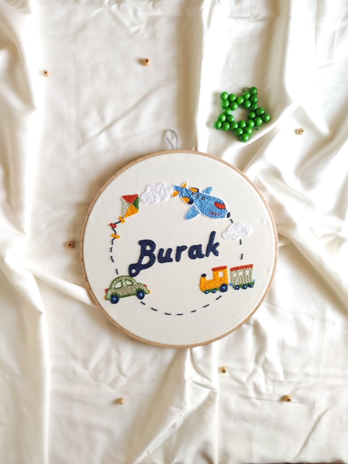 Çocuklar için Nakışlı Renkli kapı süsü kasnak pano