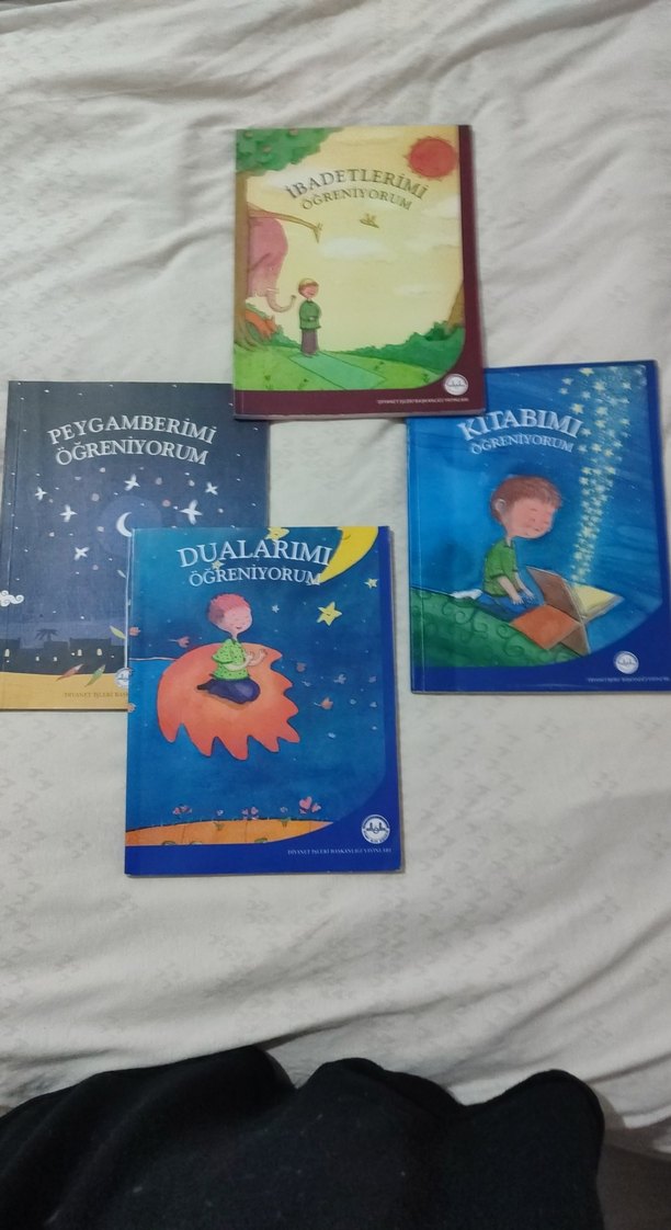Çocuklar için 'Ibadetlerimi Öğreniyorum,' 'Peygamberimi Öğreniyorum,' 'Dualarımı Öğreniyorum' ve 'Kitabımı Öğreniyorum' kitap seti.