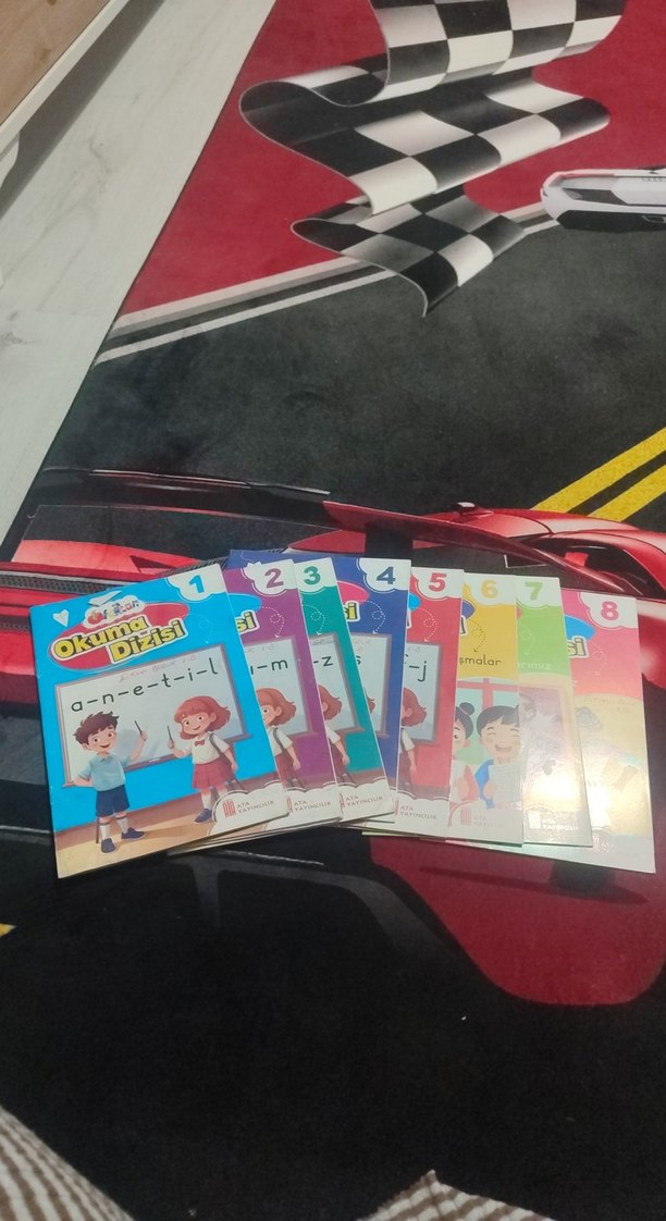 Çocukların okuma becerilerini destekleyen, renkli kapaklı ve eğlenceli resimlerle dolu kitap seti.