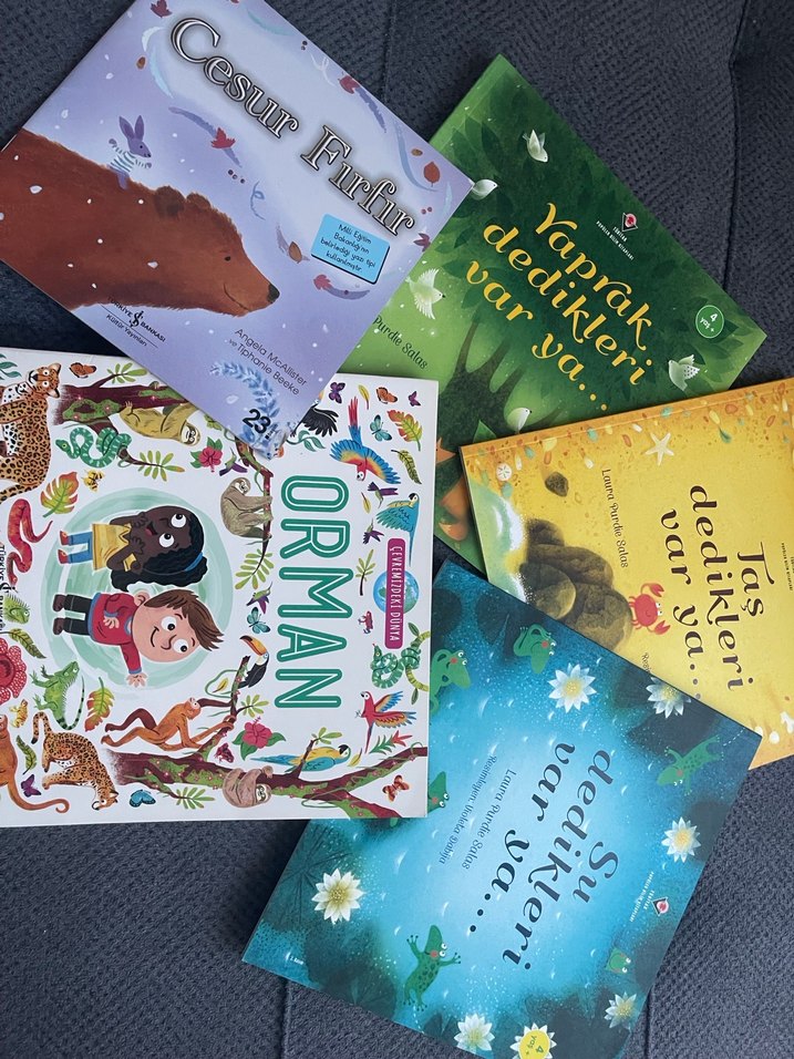 Orman, yaprak, su ve hayvan temalı çocuk kitapları koleksiyonu. Genel tema orman ve doğa. 3 adet TÜBİTAK, 2 adette İş Bankası yayınları. Temiz ve hasarsızlar. #işbankası #tübitak #cesurfırfır #orman #taşdediklerivarya #sudediklerivarya #yaprakdediklerivarya #kitap