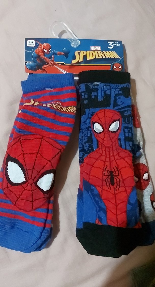 Örümcek Adam baskılı, koyu renklerde çok renkli 3 çift çocuk çorabı seti. ️
