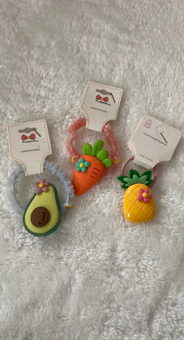 Çocuklar için elastik, pastel renkli, avokado, havuç ve ananas desenli bohem tarzda saç tokaları set halinde