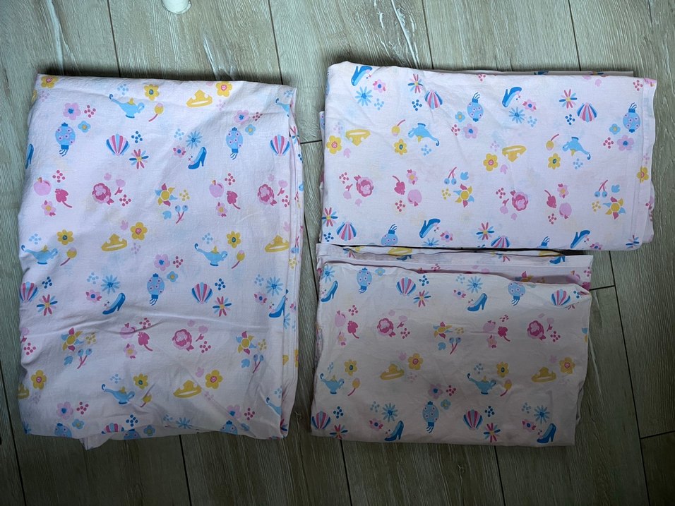 Çocuklar için pastel renklerde, çok renkli desenli, yumuşak sentetik kumaştan uyku seti. ️