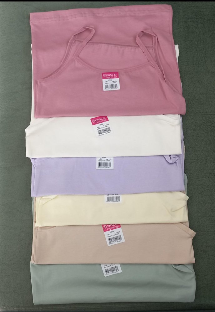 Çocuklar için yumuşak ve rahat pastel renklerde, desensiz iç atletler. Pembe, beyaz ve lavanta gibi renk seçenekleri bulunmaktadır.