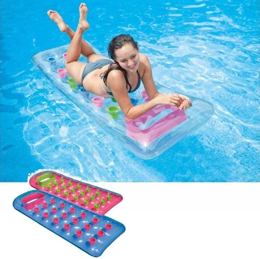 Pastel renklerde, çoklu hava yastıklı çocuklar için şişme havuz minderi. Rahat ve eğlenceli kullanıma uygundur.