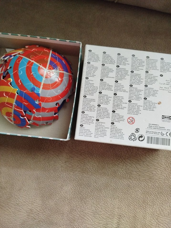 Çok renkli tasarıma sahip bu 3D puzzle, çocuklar için eğlenceli ve geliştirici bir etkinlik sunar. Parçalar küresel bir şekil oluşturur.